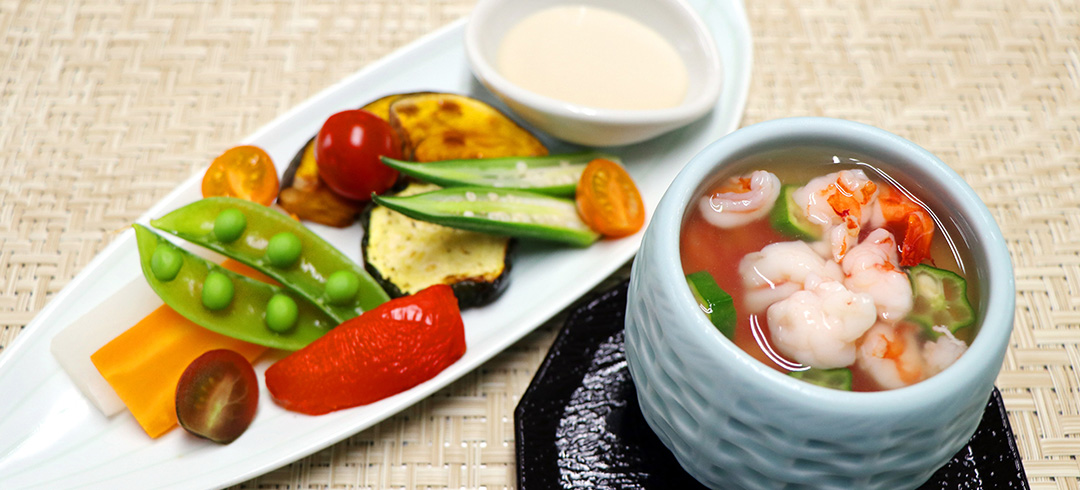 - ご予約の時点で予めご要望いただいた場合、【卵、乳、えび、そば、かに】の5 品目については、お食事内容を変更させていただくことができます。なお他のお食事と同一の厨房で、共通の調理器具などを使用し調理しています。そのため、微量の食材が付着、混入する可能性があります。また、一部加工食品や調味料に微量が含まれることもあります。
