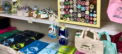 お菓子やお飲み物はもちろん、お土産やおこみんグッズも充実しています。