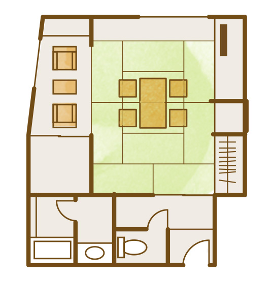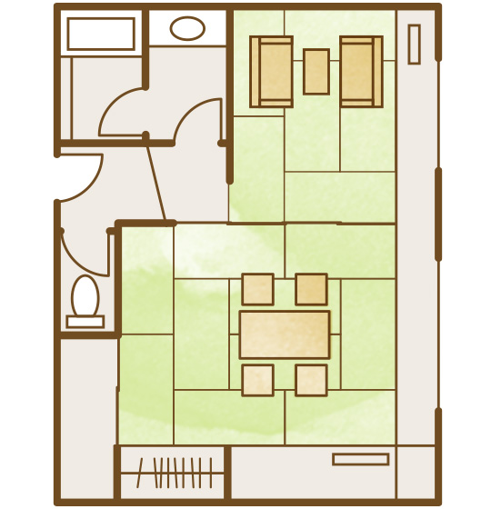 3世代のご家族や、男女のグループなどゆったりとお部屋を使いたいお客様に最適です。和室の小部屋はふすまで仕切ることが出来ます。