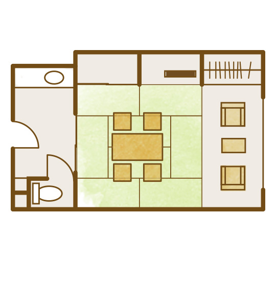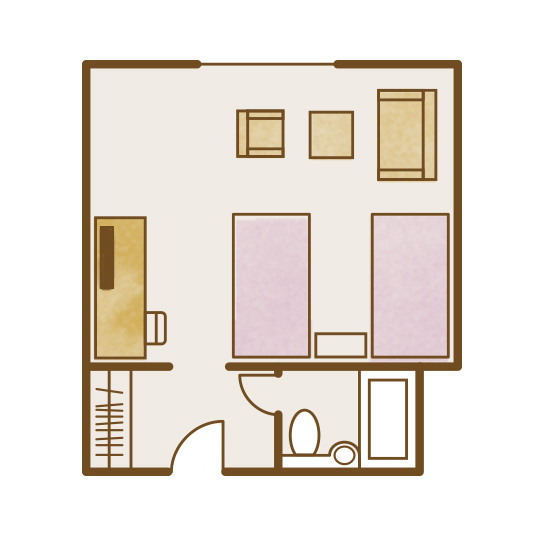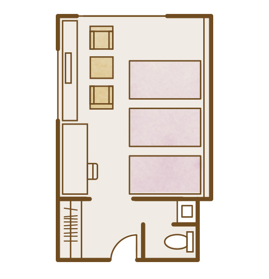 間取りは4種類のバリエーションがございますが、どのタイプかは宿にお任せ下さい。