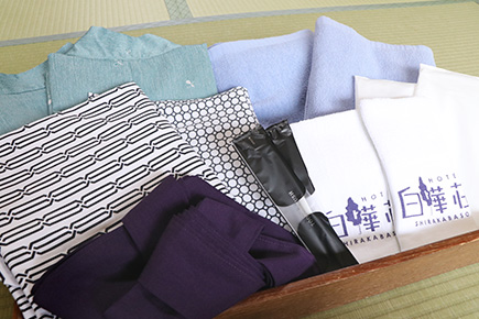 ハミガキセット、タオル、バスタオル、浴衣、スリッパ